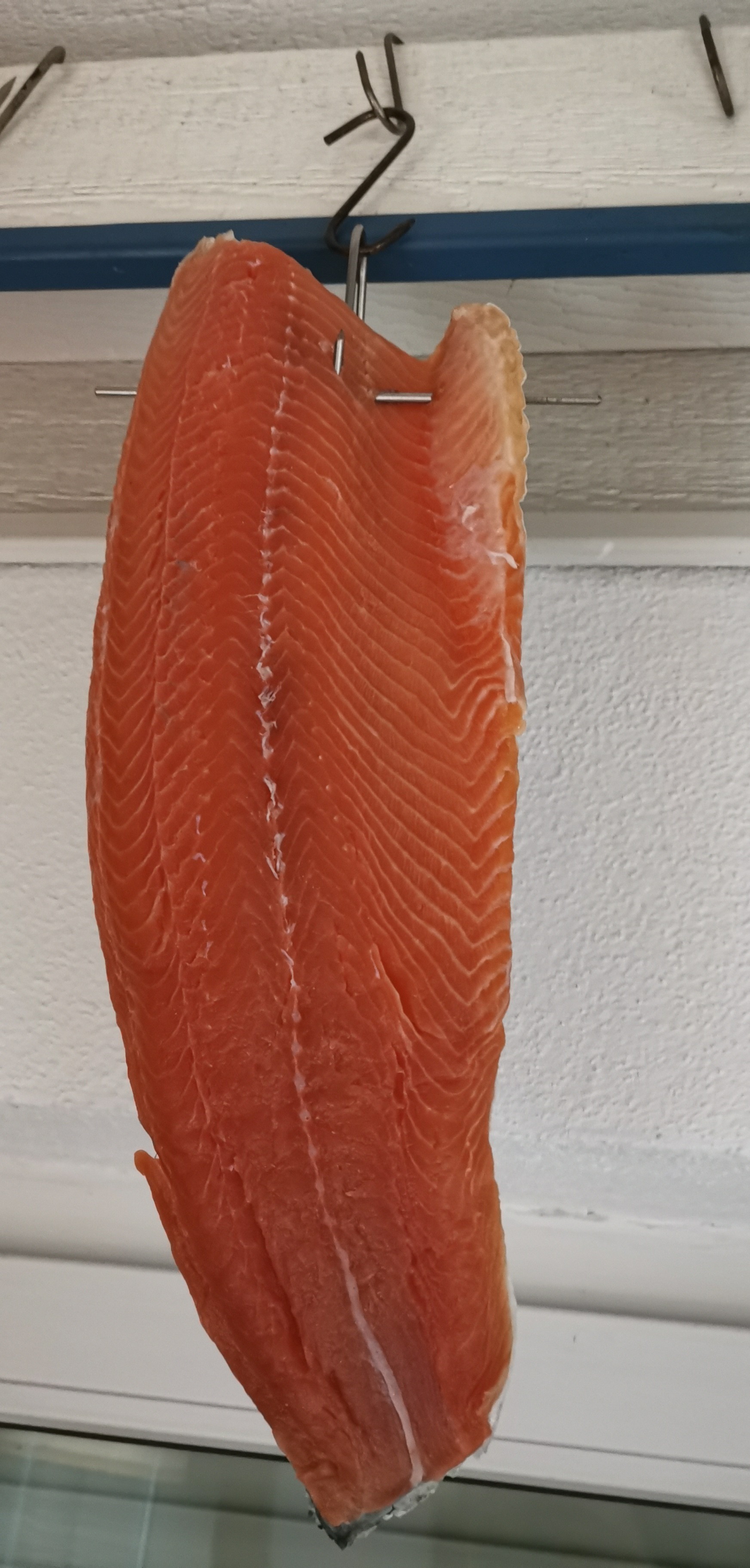 Nach 8-12 Stunden das Lachsfilet aus dem Kühlschrank nehmen und mit kaltem Wasser ordentlich abspülen. Dann das Lachsfilet mit Küchenpapier richtig trocken tupfen und an einem kühlen, trockenen Ort für 24 Stunden (zum Beispiel an Räucherhaken) aufhängen.