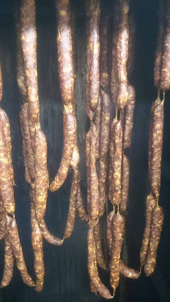 - Je länger die Wurst hängt, desto trockener und knackiger wird sie.