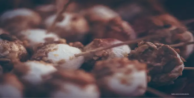 Nach einem leckeren Schaschlik-Spieß aus Fleisch wünscht man sich als Nachtisch doch gerne etwas Fruchtiges oder Süßes. Auf diesem Schaschlik-Spieß stecken jedoch anstatt Fleisch Ananas, Banane und Kumquat. Diese sorgen mit der Schoko-Espresso-Sauce für ein leckeren Abschluss und sind super beliebt bei Gästen. Nicht nur schön zum Anschauen, sondern auch köstlich zum Vernaschen.