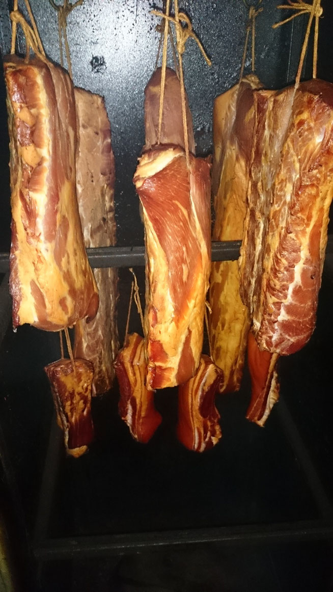 Nach dem Wasserbad wird das Fleisch nochmals für ca. 48 Stunden an einem trockenen Ort gelagert, ehe es mit dem eigentlichen Räuchern des Schinkens losgehen kann.