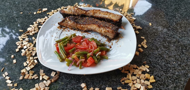 Zubereitung kaltgeräucherte Spareribs mit Bohnen-Tomaten-Salat: